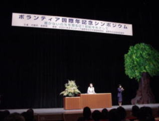 | 2001年ボランティア国際年を記念して、内閣府・長野県主催のシンポジウムが開かれました。企画運営は、2001年ボランティア国際年ながの推進協議会と長野市社会福祉協議会が行い、1,500人の参加で盛会裏に終了しました。 |