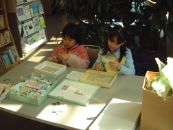南部小学校4年3組の2人が、切手の整理の応援にやってきました。