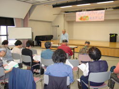 | 街を緑でいっぱいに。地球環境にやさしい朝顔の種もプレゼント。Gグリーンボランティア | 各々の活動の歴史や奥深さにうなづくことばかり。 | ↑やはり最後はこれ、テーブルを囲んでお互いの出来栄えを?交換し合いました。 |