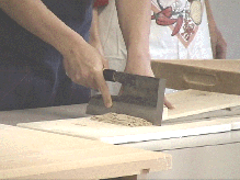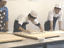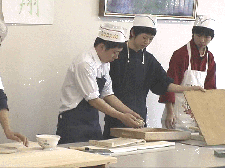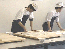 | ●きちんとたたみます | ●そば切り | ●切ったそばをつめます |