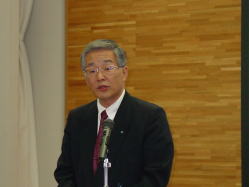 | ↑それぞれのパートで、活動報告がされました。 | ↑「今年1年、さまざまな活動を進めてきました。これをきっかけにして、次の時代に向けて一歩を踏み出しましょう。」浅川会長のあいさつ |