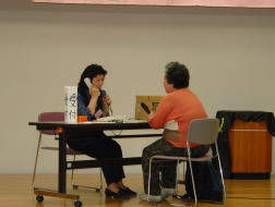 | ボランティアセンターはボランティアのみなさんに支えられています。よりいい会は受付で来訪者を迎えます。 | 即興の寸劇は息もピッタリ。わかりやすく全体説明。Fよりいい会 | 「ピンシャン生きよう会」は会場予約。Fよりいい会 |
