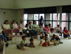 | ラジカセで音楽を流しながらの熱演でした。きむりの会 | お子さんがいるお母さんの力強い味方です。 さくらんぼ | わいわい遊んでいたこどもたちが釘づけになっていました。 お話紙ふうせん |