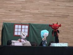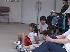 | 人形劇にみなさん見入っていますね | ディズニーの曲に合わせてのパラパラ、ちっちゃな子もいっしょうけんめい。 マフィンさんのパラパラ | 子どもたちの笑顔がいろんなボランティア活動を支えています。 |