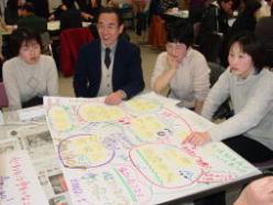 | ↑まとめたものを見て、課題の整理と解決策を話し合い、箇条書きします。 | ↑全体で発表しあいます。さて、皆さんのお宝は何だったのでしょうか。 |