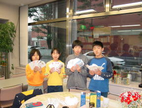 鍋屋田小学校の皆さんが集めた「未使用のはがき」を届けてくれました。